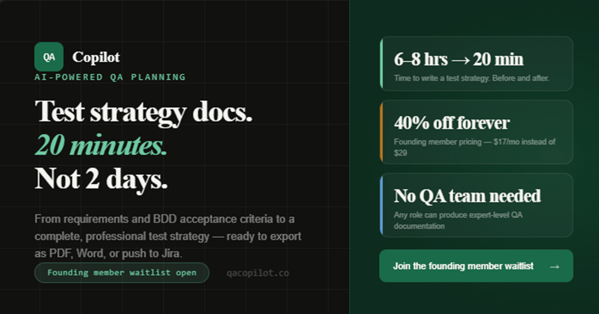 → 40% off Pro pricing, locked in forever — $17/month instead of $29, for as long as you use QA Copilot